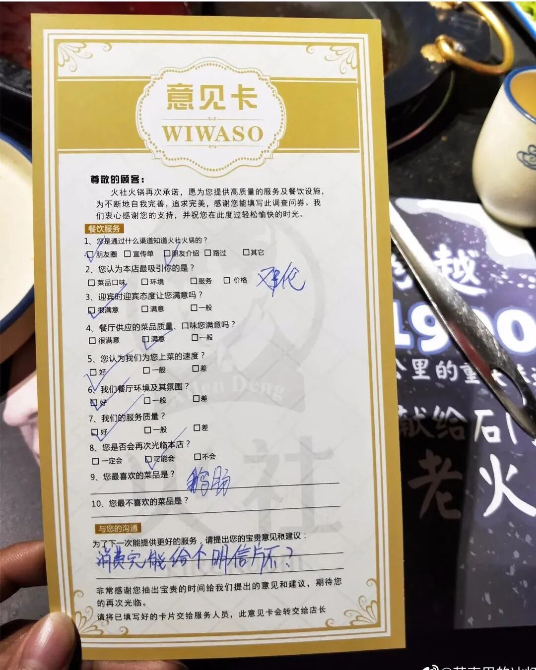 除了报销之外,一般的收银小票都会在结完账后被丢弃,而亲爱的麻辣烫被网友拿来四处展示宣传的,不是正儿八经的促销广告,而是收银小票上附带的“麻辣日历”,一条心灵鸡汤的收银小票,很可能就做到了让消费者自发进行宣传的效果,这样的营销创意,是不是也值得借鉴?意见卡仅仅为了收集意见?其实不然,意见卡更多的是一种责任、信赖的信息传达,通过意见卡,既可以让用户表达自己的意见,也可以进一步增加用户的粘性。当很多店铺还在送折扣券、宣传单页的时候,有的老板已经开始用小赠品收买人心了。发10张广告单页,不敌送1个贴心小赠品,暖了顾客的心,顾客也会晒圈宣传。营销要尽量获得顾客欢喜,最好是超预期的惊喜,而不是反感,赠品营销就是一种连接顾客的方式,在企叮咚平台采购礼品,低价格高质量,更快获得顾客的信任!