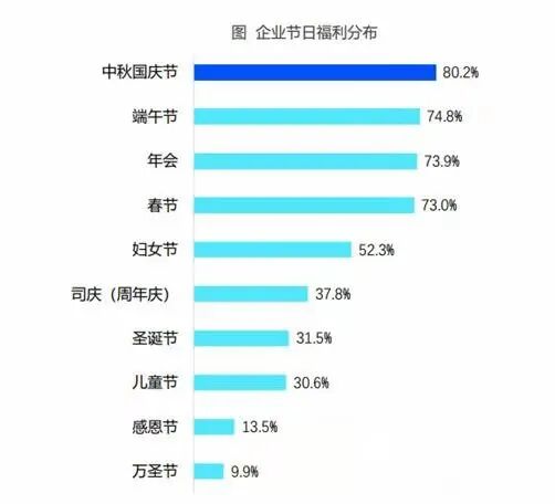 根据相关数据统计,中秋、端午、春节这三个传统节日成为企业福利Top3的节日,大部分的企业都会选择在这几个时间节点发放福利。