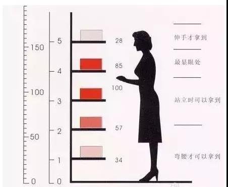 一般来说,利润较高或快过期的东西,放在货架1.5米到1.7米的高度之间,这是从顾客们的平均身高和眼光平行线考虑的。